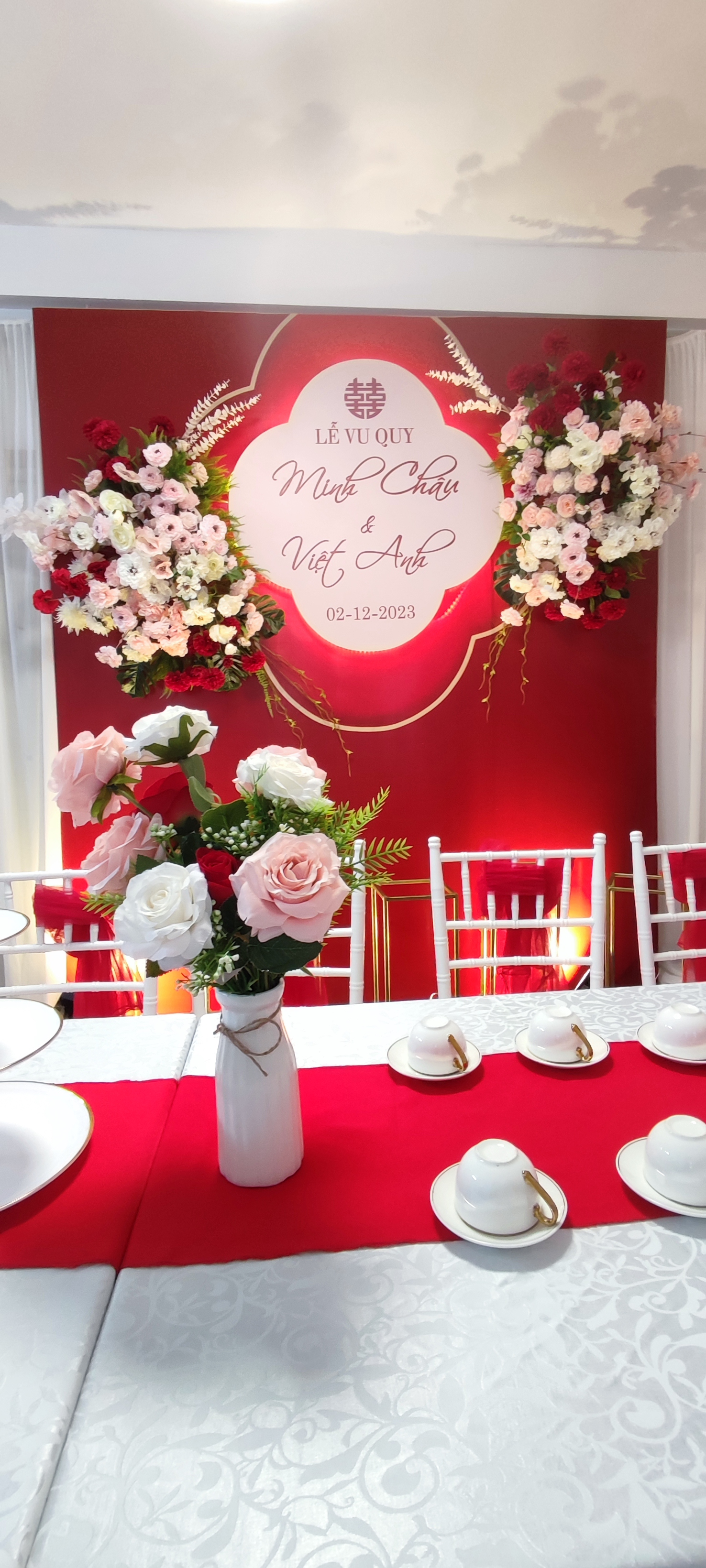 Với những cặp đôi yêu thích sự truyền thống thì việc thiết kế phông nền đám cưới với tông màu đỏ dường như là một lựa chọn không thể bỏ qua. Với người Á Đông, màu sắc này không chỉ tượng trưng cho sự may mắn mà còn mang đến những điều tốt lành cho cô dâu, chú rể.