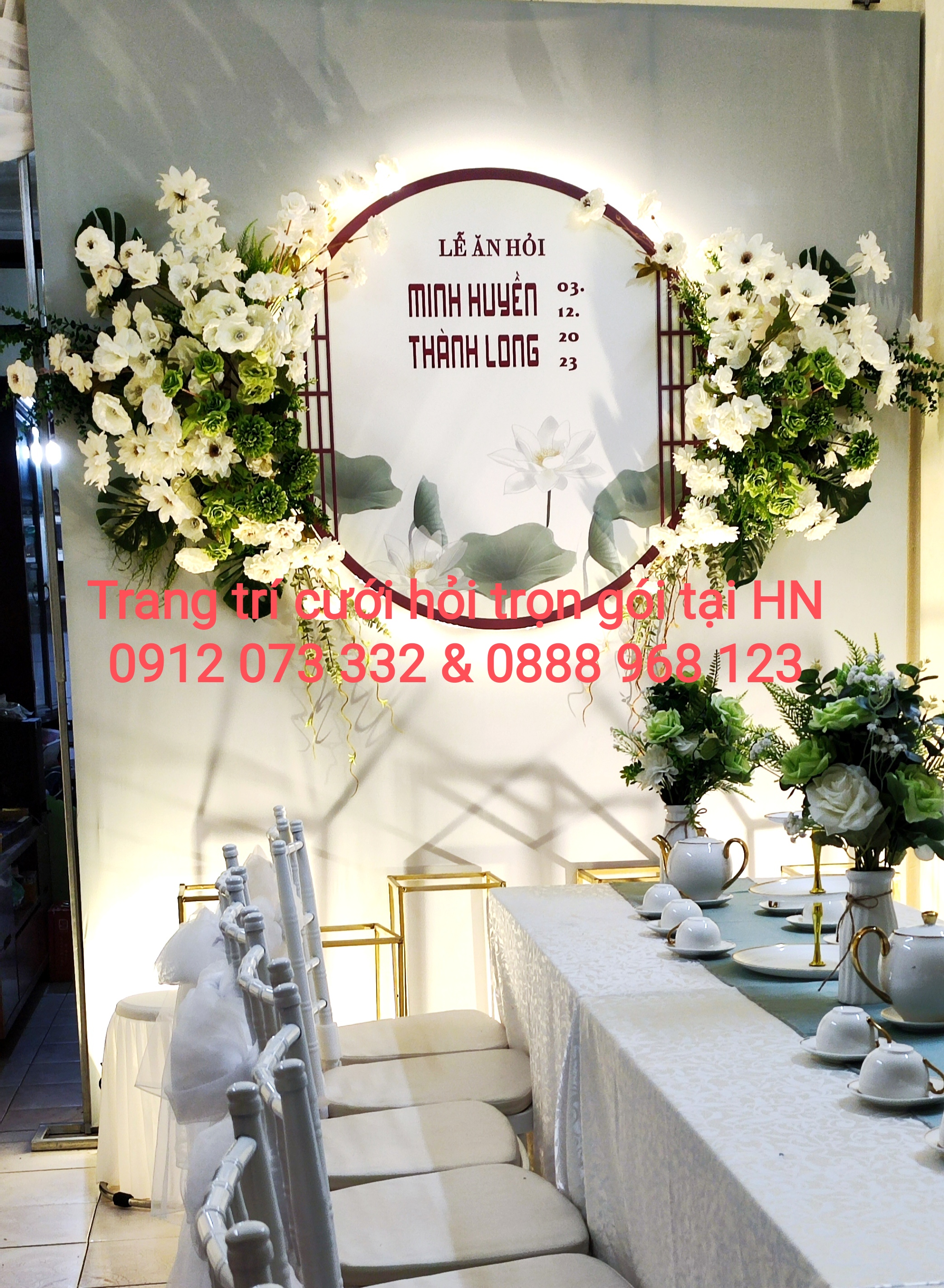 Ngoài ra chúng tôi còn nhận trang trí cưới hỏi tư gia , nhà rạp , khách sạn, hội trường , tráp dạm ngõ , ăn hỏi , đội bê đỡ tráp , xích lô, loa đài …