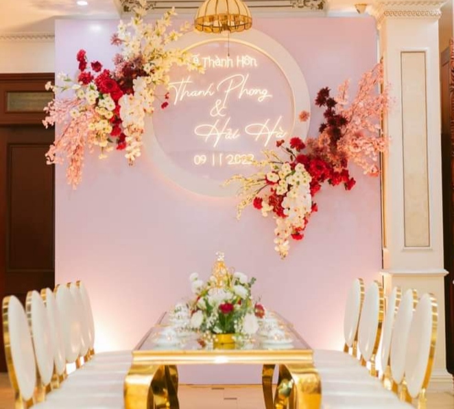 Phông cưới ( hay còn gọi là backdrop trên sân khấu) là một trong những điểm nhấn quan trọng nhất của đám cưới. Không quá lời khi gọi nó là “linh hồn” cho đám cưới của bạn. Các nghi thức chính của buổi tiệc cưới sẽ được diễn ra trước phông cưới vì vậy toàn bộ sự chú ý của khách mời sẽ tập trung vào phông cưới . Do đó phông cưới cần được đặt ở khu vực trung tâm của bữa tiệc.