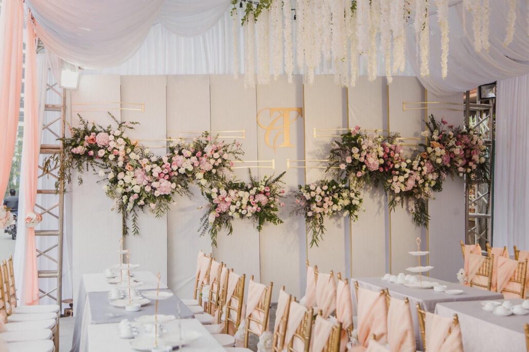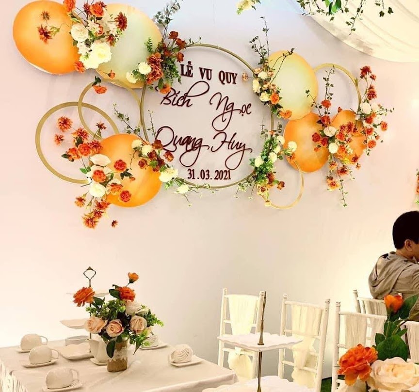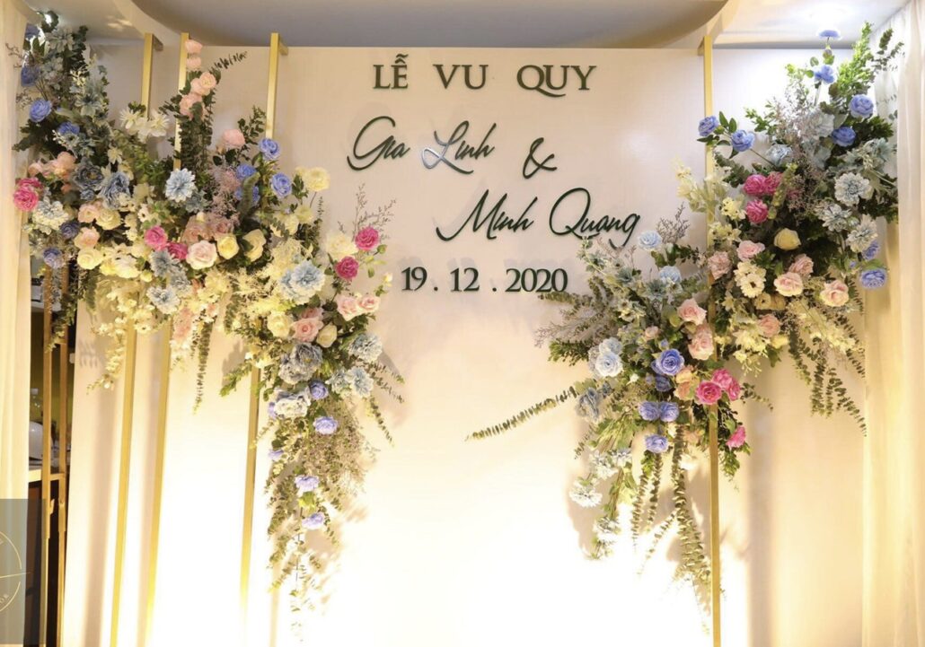 Chính là phông nền nơi mà cô dâu chú rể chụp ảnh cùng quan khách – phông nền ( backdrop) thường được đặt bên ngoài rạp cưới