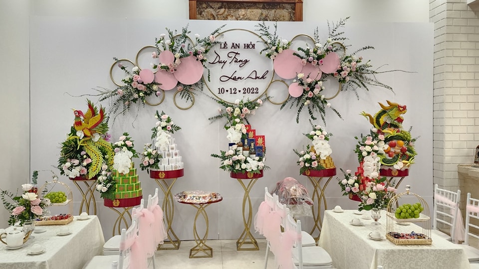 Ngoài dịch vụ tráp lễ ăn hỏi , chúng tôi còn cung cấp các dịch vụ trang trí phông cưới, trang trí cổng hoa cưới, cho thuê bàn ghế tiệc cưới, cho thuê rạp cưới…uy tín, chất lượng, giá cả cạnh tranh