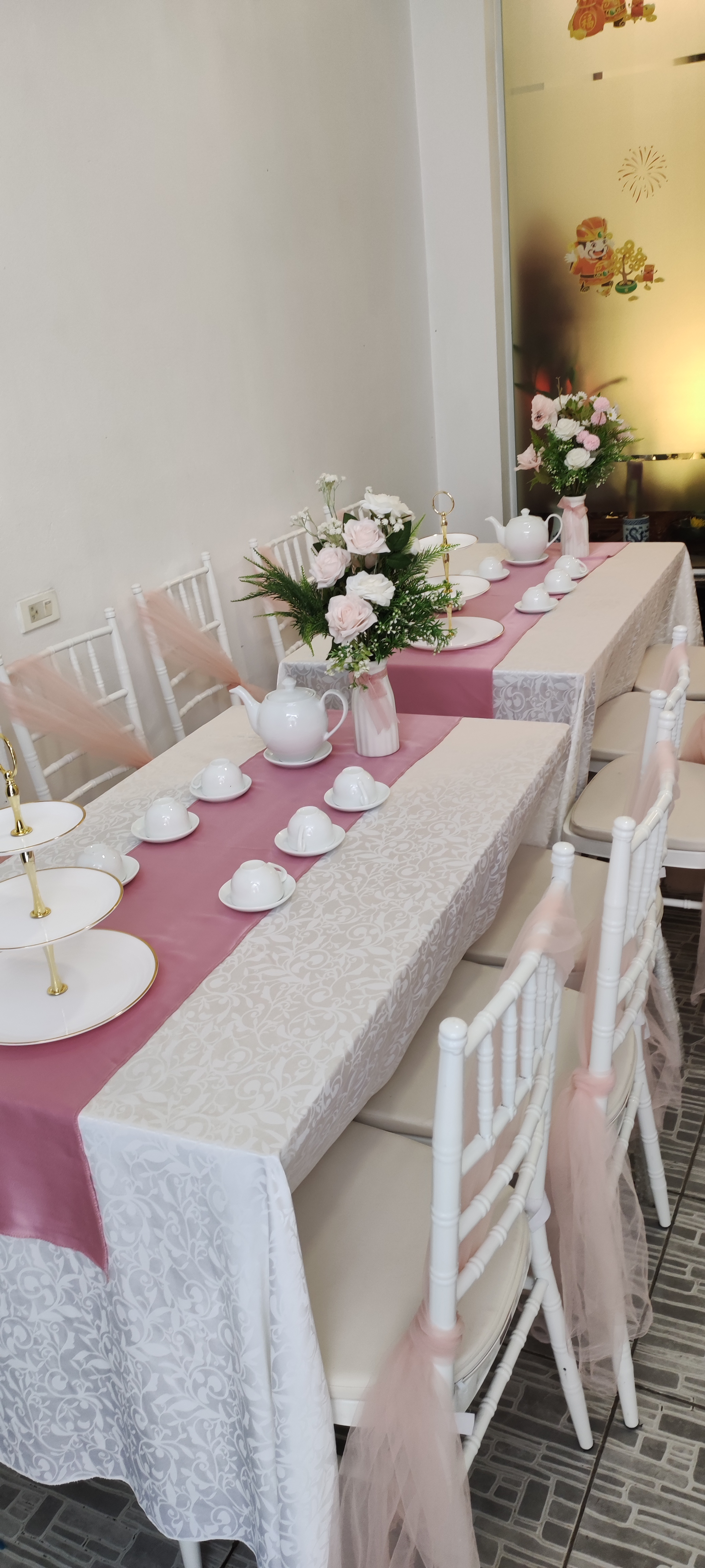 - Khăn trải bàn, áo ghế, nơ ghế theo tone màu: 30.000đ/ 1 bộ ( 1 bàn 6 ghế )