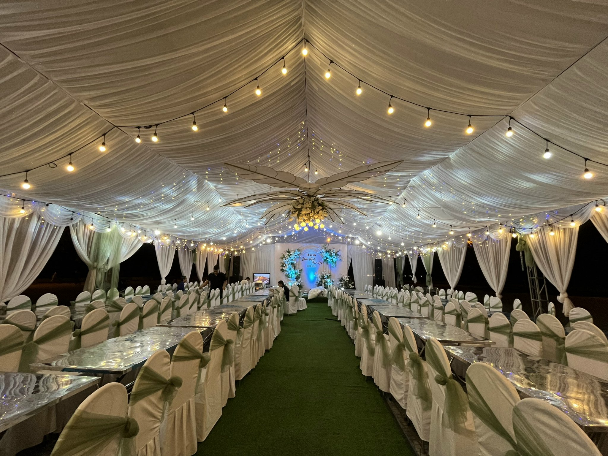 - Dự kiến không gian cần để chứa khoảng bao nhiêu khách mời . Từ đây sẽ tính được số lượng bàn ghế cần thiết và kích thước rạp phù hợp