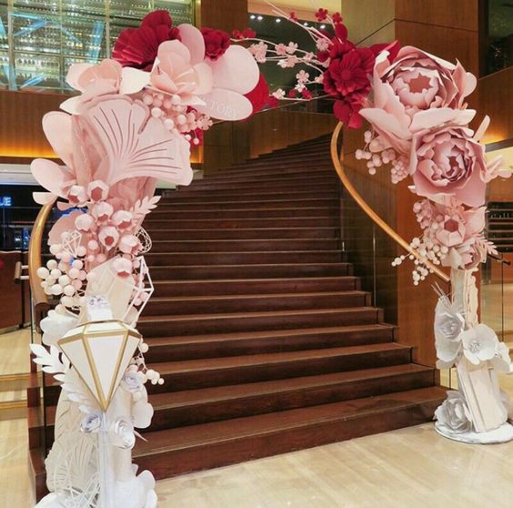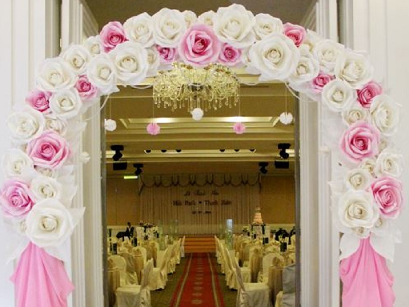 Sự ra đời của trang trí cổng cưới bằng hoa giấy tạo nên cổng cưới đẹp làm đa dạng hóa mẫu mã cho các cặp uyên ương có thêm lựa chọn trong ngày trọng đại .