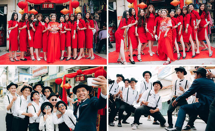 - Đội hình bê đỡ tráp phải có chiều cao , lứa tuổi đương đương nhau – thấp hơn cô dâu chú rể 1 chút là đẹp nhất