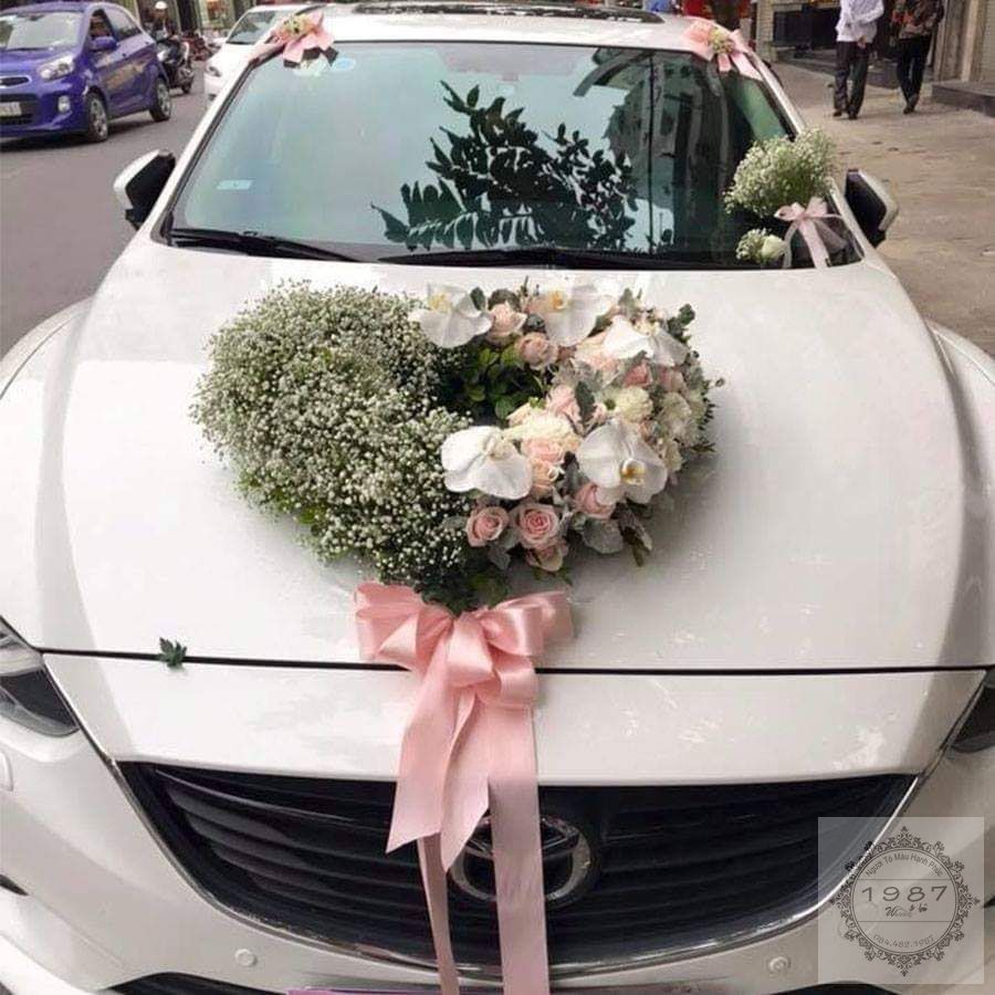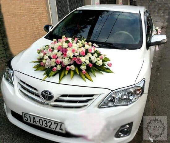 Hoa trang trí xe cưới thường là cô dâu chọn loại hoa mình yêu thích, tone suyệt tone với màu không gian tiệc cưới, hoặc loại hoa này có ý nghĩa đặc biệt với kỷ niệm của cả 2.