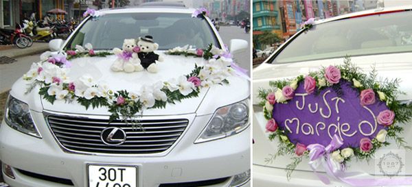 để trang trí xe hoa như bằng hoa tươi, hoa giấy, hoặc hoa giả bằng nhựa hay hoa bằng lụa…