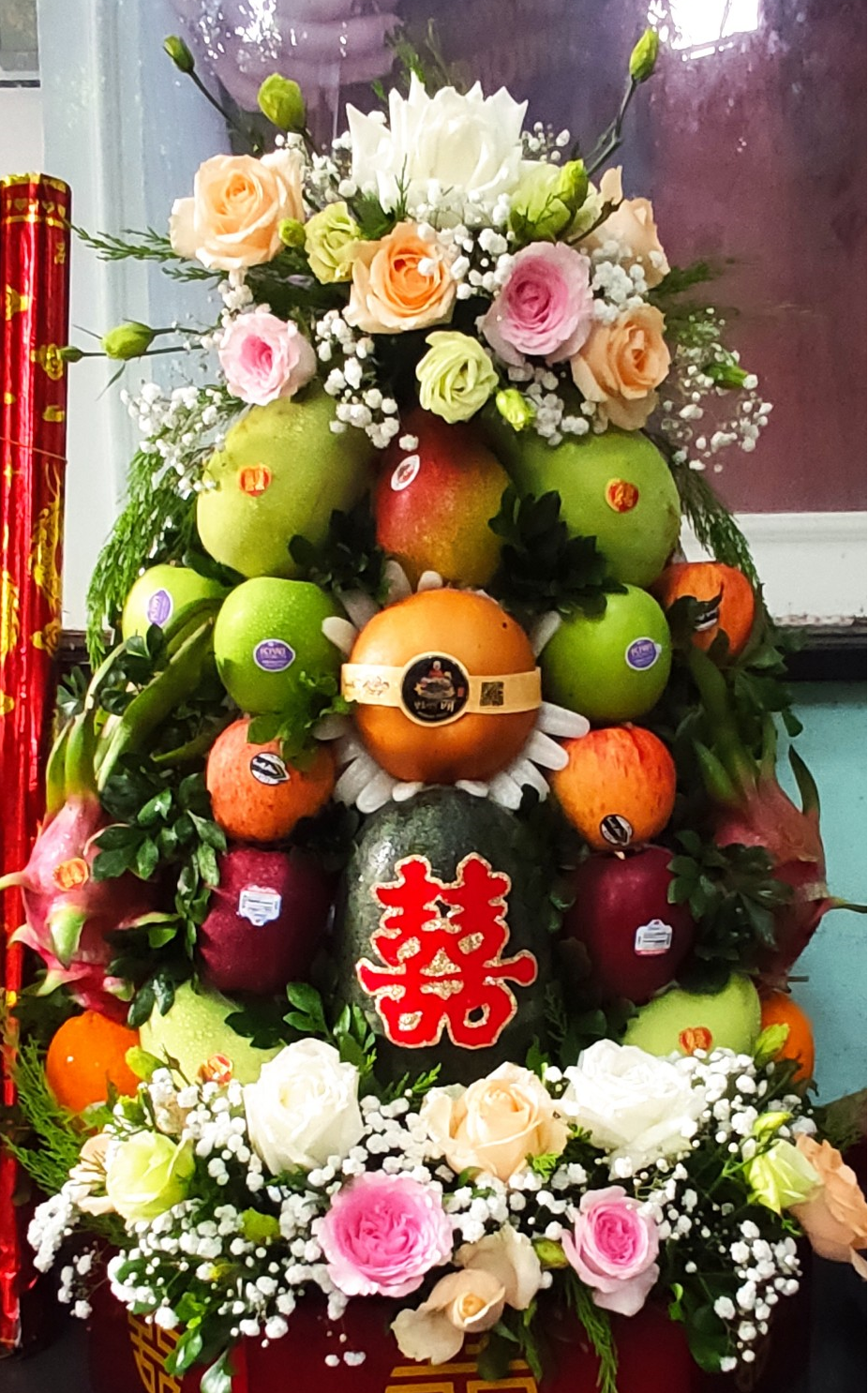 Hoa quả được lựa chọn cẩn thận từng trái đa dạng về màu sắc kết hợp hoa tươi được kết tinh tế theo mẫu mã và yêu cầu của quý khách hàng.