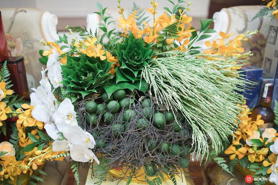 Buồng cau là một trong những lễ vật quan trọng nhất trong bộ lễ ăn hỏi, vì vậy cần phải tuyển chọn kỹ lưỡng , quả tròn đều lá xanh tươi . Và đặc biệt phải dùng cau nguyên buồng .