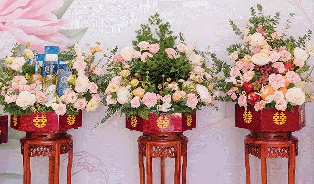 • Tráp lễ có thể trang trí bằng hoa tươi sẽ đẹp và sang trong hơn rất nhiều