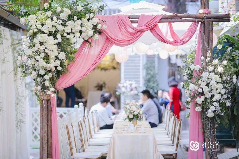 Cổng hoa cưới được đặt ở cửa rạp không chỉ đóng vai trò là lối vào mà còn giúp dẫn dắt cảm xúc của khách mời khi bước không gian tiệc cưới. Một cổng cưới được trang trí đẹp mắt và ấn tượng sẽ mang lại niềm vui và sự phấn khích. Nó tạo nên bầu không khí vui tươi cho khách dự tiệc cưới và cũng là tín hiệu báo Hỷ sự. Đồng thời đây là điểm check in của dâu rể với khách mời nhiều nhất.