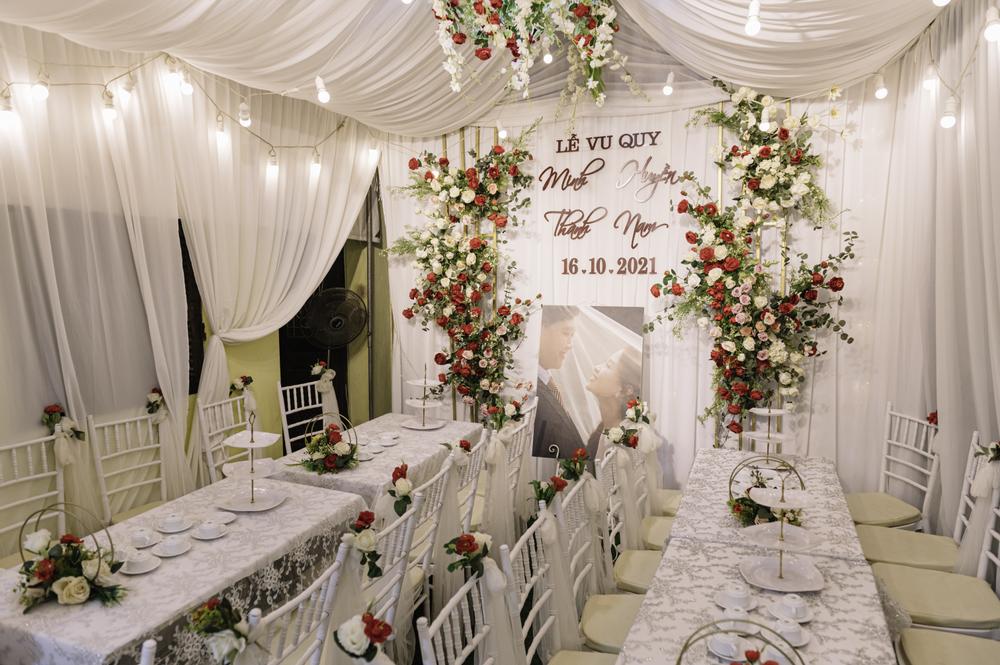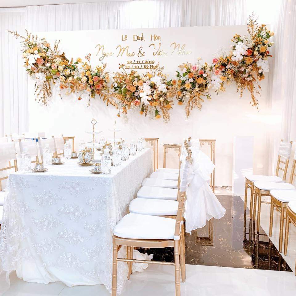 Tại nhà riêng với không gian nhỏ, lượng khách ít thì phong cách trang trí phông cưới không cần quá cầu kỳ nhưng phải sang trọng.