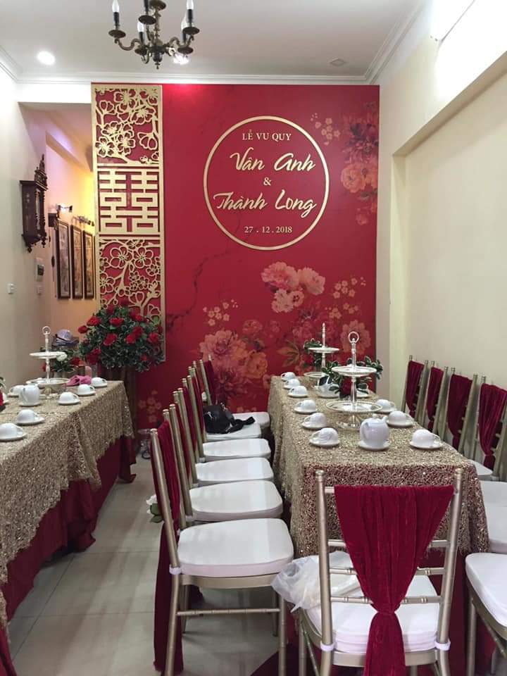 Ngày ăn hỏi: Đối lập với nhà trai, ngày ăn hỏi là vô cùng quan trọng đối với nhà gái. Lúc này, ngoài các thành viên trong gia đình còn có khách mời nhà trai sang nên việc đầu tư trang trí và lựa chọn phông đẹp là cần thiết.