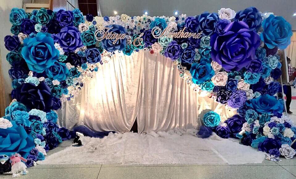 Gần đây, xu hướng lựa chọn phông cưới được kết từ hoa lụa và những mảnh giấy với nhiều màu sắc khác nhau.