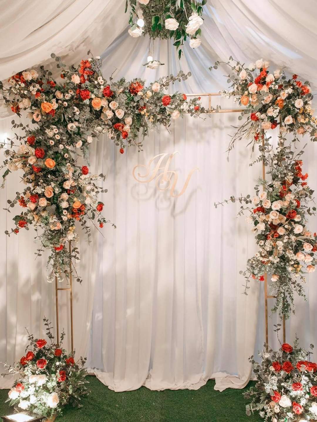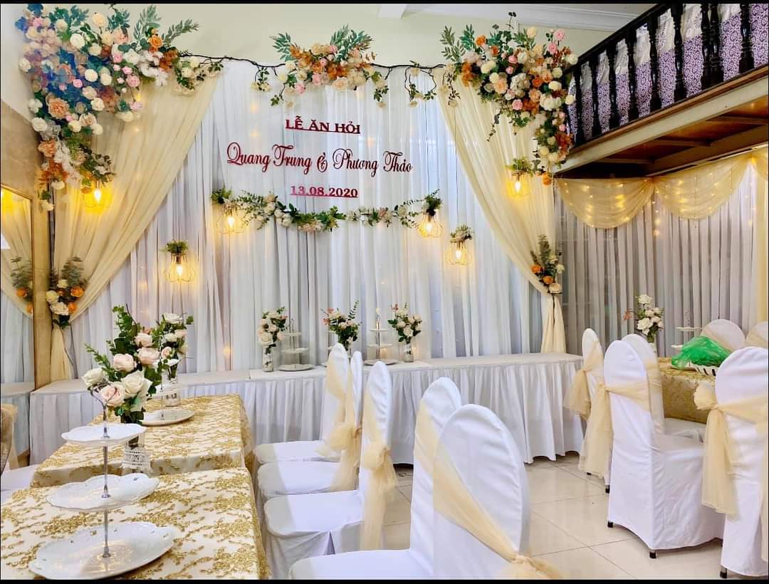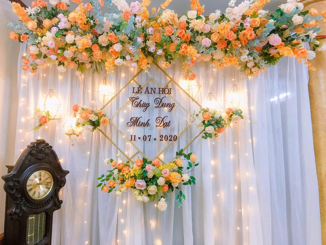 Một chiếc phông cưới được trang trí cẩn thận, cầu kỳ, đẹp mắt còn khiến khách mời của đám cưới bạn cảm thấy được sự tôn trọng, quan tâm, hiếu khách từ bạn.