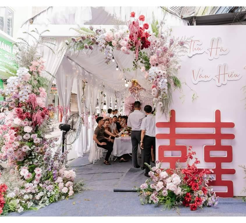 - Cổng hoa tươi/lụa được thiết kế độc quyền.