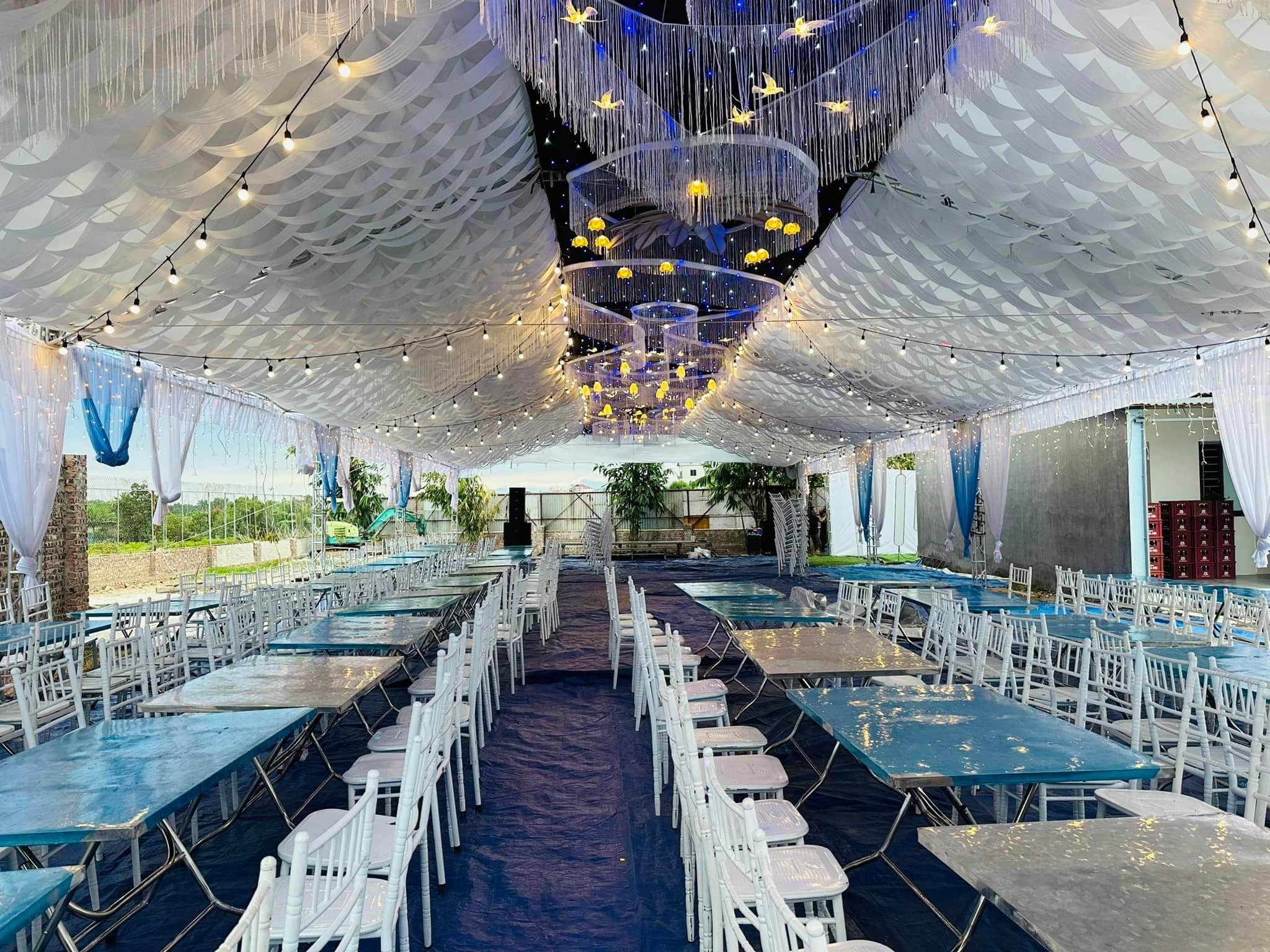 Điều quan trọng hơn cả là nhà rạp cưới còn dùng để che mưa che nắng . Giúp đám cưới được diễn ra suôn sẻ , không bị gián đoạn bởi thời tiết .