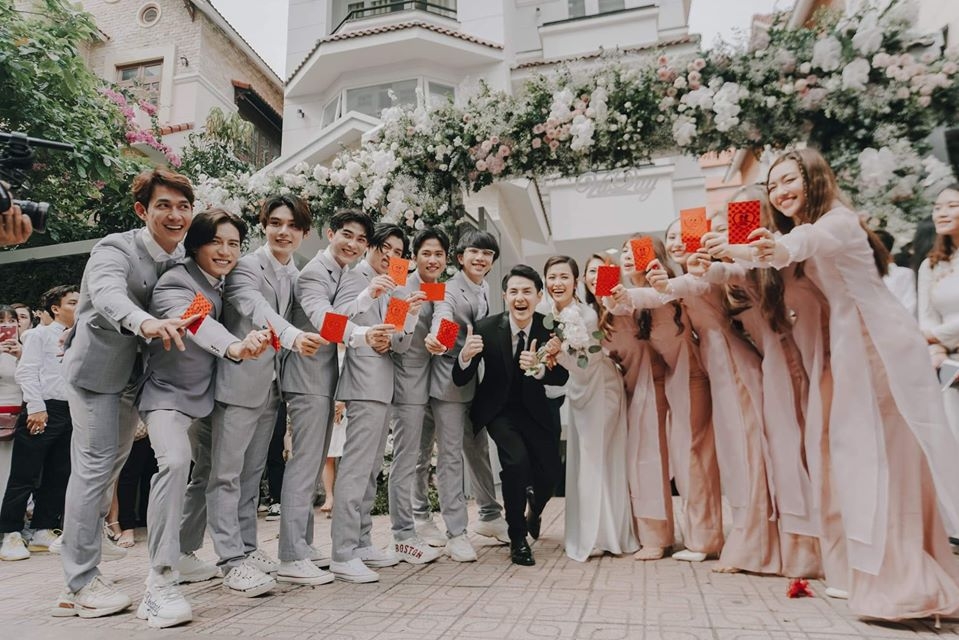 Sau khi kết thúc nghi lễ trao nhận tráp lễ, hai đội sẽ tiên hành trao đổi lì xì màu đỏ cho nhau .
