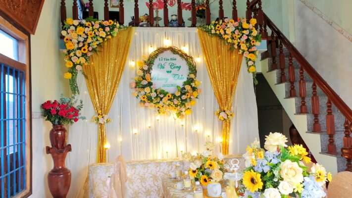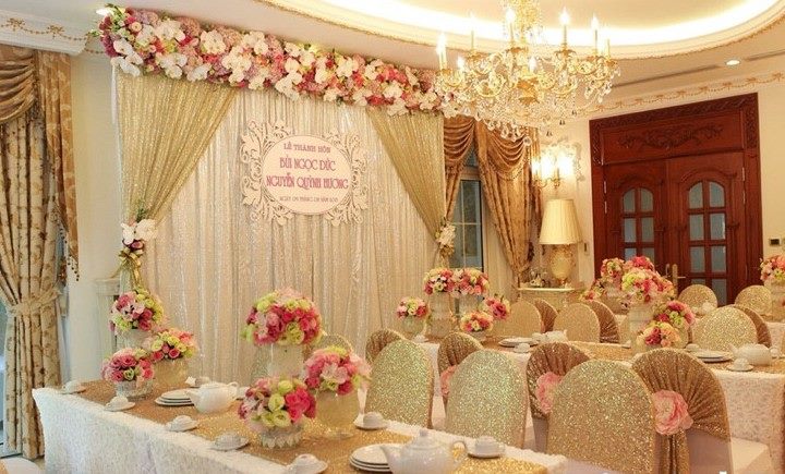 Là con gái, ai mà không muốn ngày quan trọng nhất của đời mình được chuẩn bị chu đáo và trang trí đẹp mắt nhất có thể? Đám cưới là một ngày quan trọng và tất cả các đồ trang trí trong nhà, từ phông nền đám cưới đến khăn trải bàn, từ việc lựa chọn chất liệu đến màu sắc đều cần phải được chú ý cẩn thận. Phông cưới kim sa mang vẻ đẹp lộng lẫy và được các cô gái yêu thích sự lãng mạn cổ tích yêu thích. Bạn có thể tưởng tượng khi bước vào địa điểm tổ chức tiệc cưới, mọi thứ đều lung linh, lung linh giống như nàng công chúa bước ra từ truyện cổ tích, thật đáng yêu phải không?