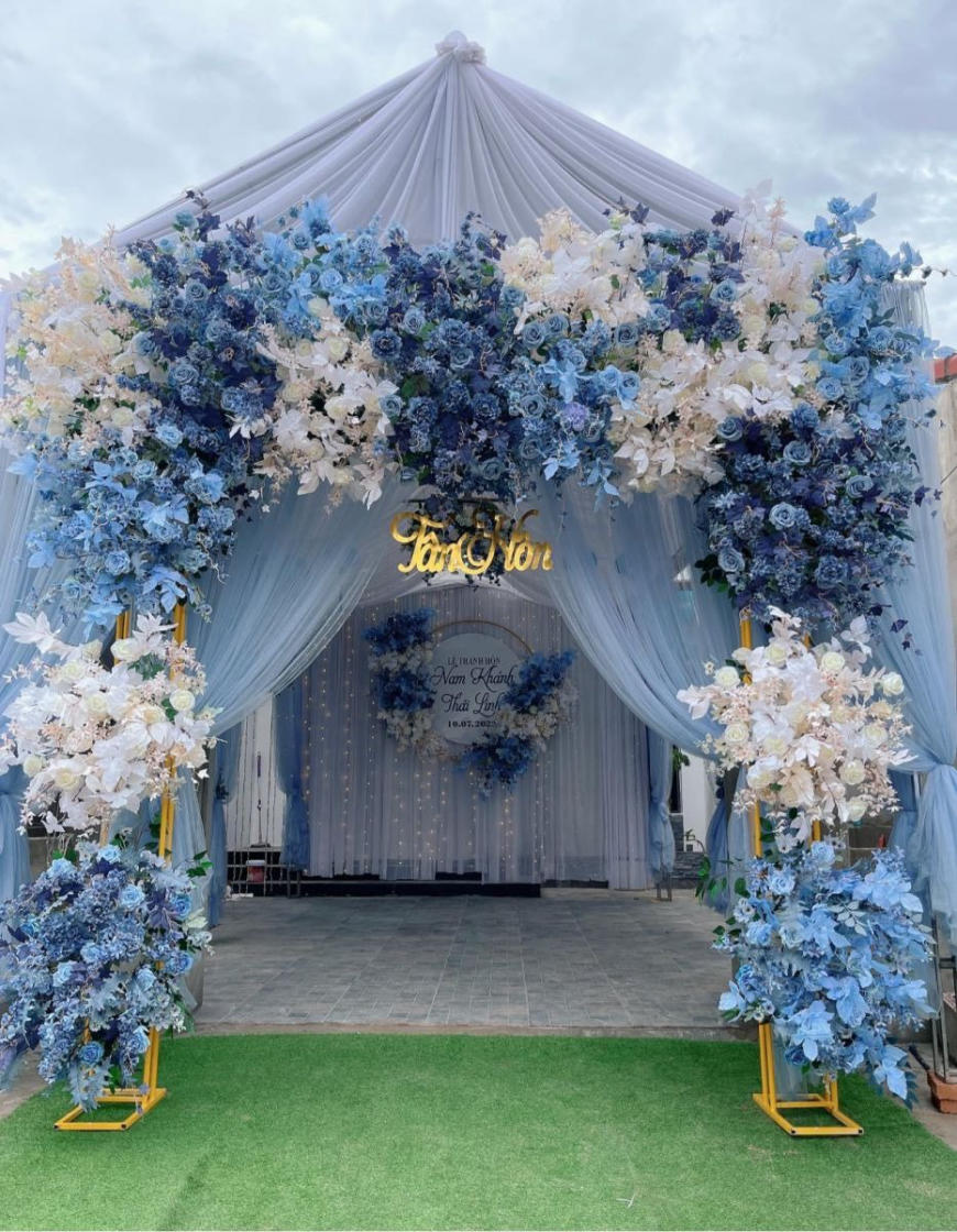 2. Trang trí cưới tone màu xanh Tuly