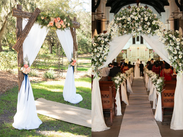 Trước đây, chỉ có đám cưới theo phong cách phương Tây mới thường được tổ chức ngoài trời. Nhưng bây giờ các cặp đôi lại thích kiểu tổ chức này. Điều này cũng khiến cho đám cưới ngoài trời trở nên phổ biến hơn. Một số họa tiết phổ biến nhất bao gồm kết hoa và các phụ kiện trang trí. Tạo dáng cổng vòm , cổng vuông, cổng kiểu cách điệu … Trang trí bằng hoa và lá tùy theo sở thích của cô dâu chú rể. Còn gì tuyệt vời hơn khi bước qua cánh cổng rực rỡ đầy hoa phải không nhỉ
