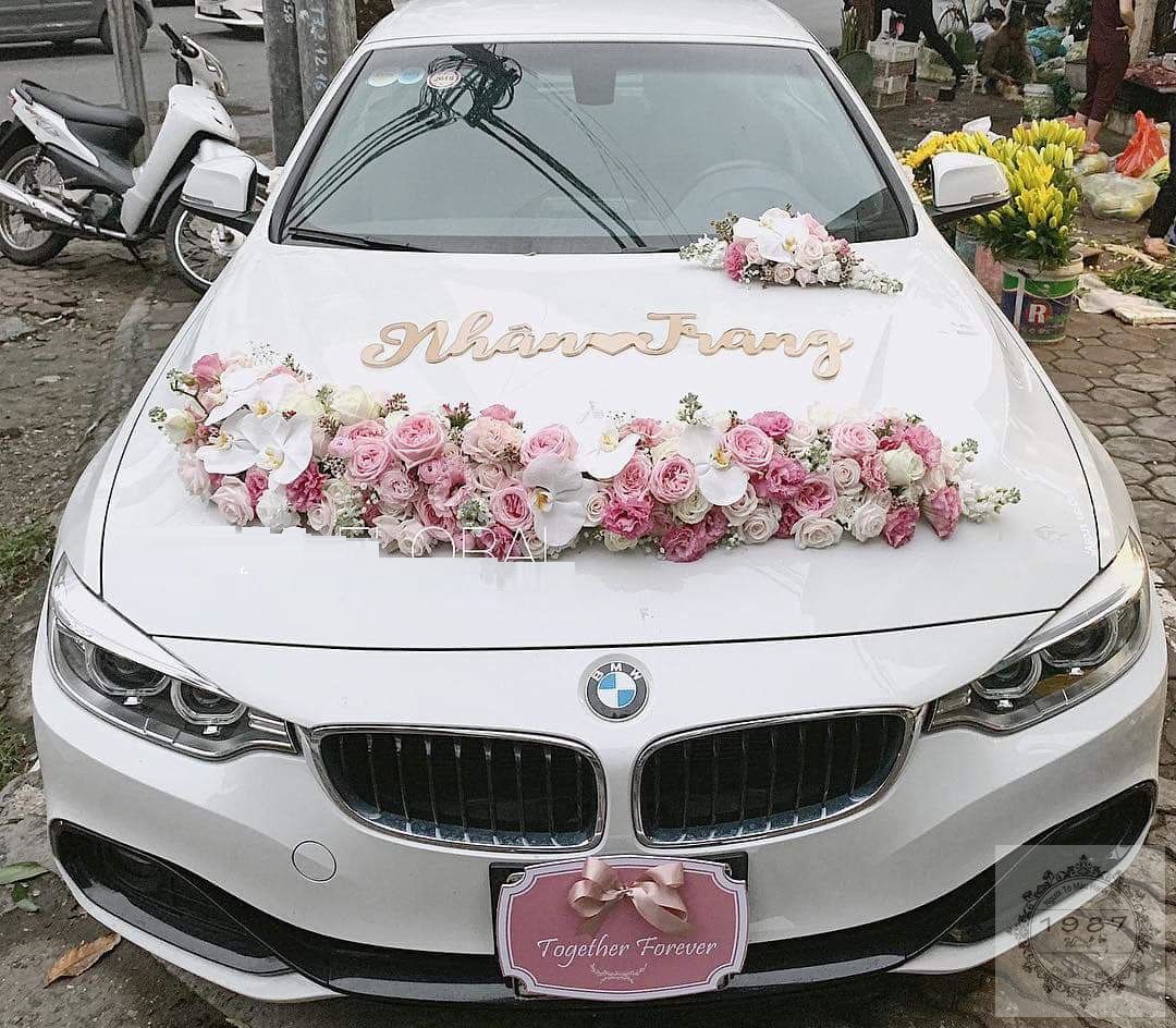 - Dùng hoa tươi để tạo điểm nhấn: Sử dụng hoa hồng, hoa lan, hoa cẩm chướng và các loại hoa tươi sáng khác để trang trí phần đầu xe nhằm thể hiện phong cách sang trọng, lãng mạn hay trẻ trung, hiện đại.