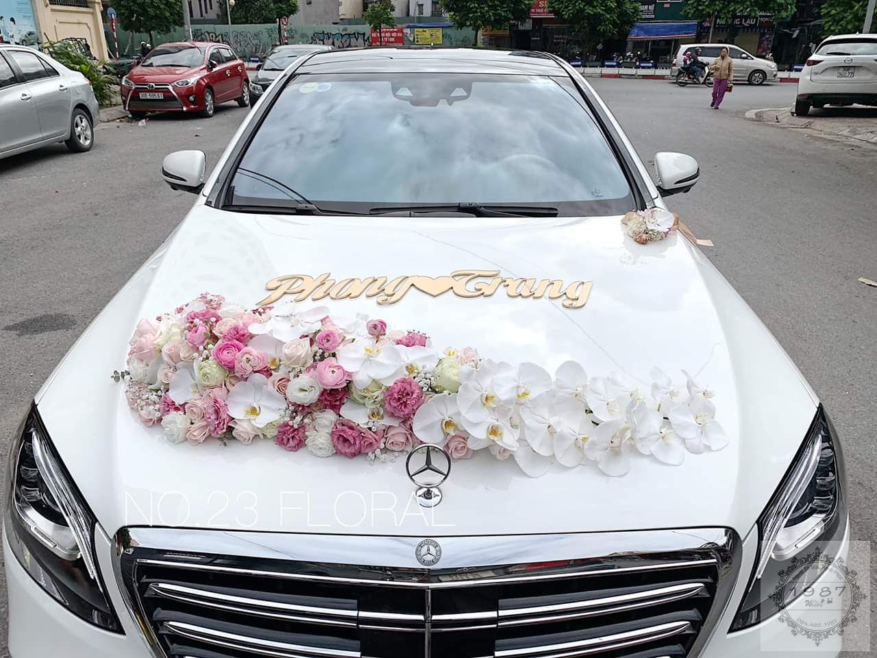 1. Trang trí hoa xe cưới