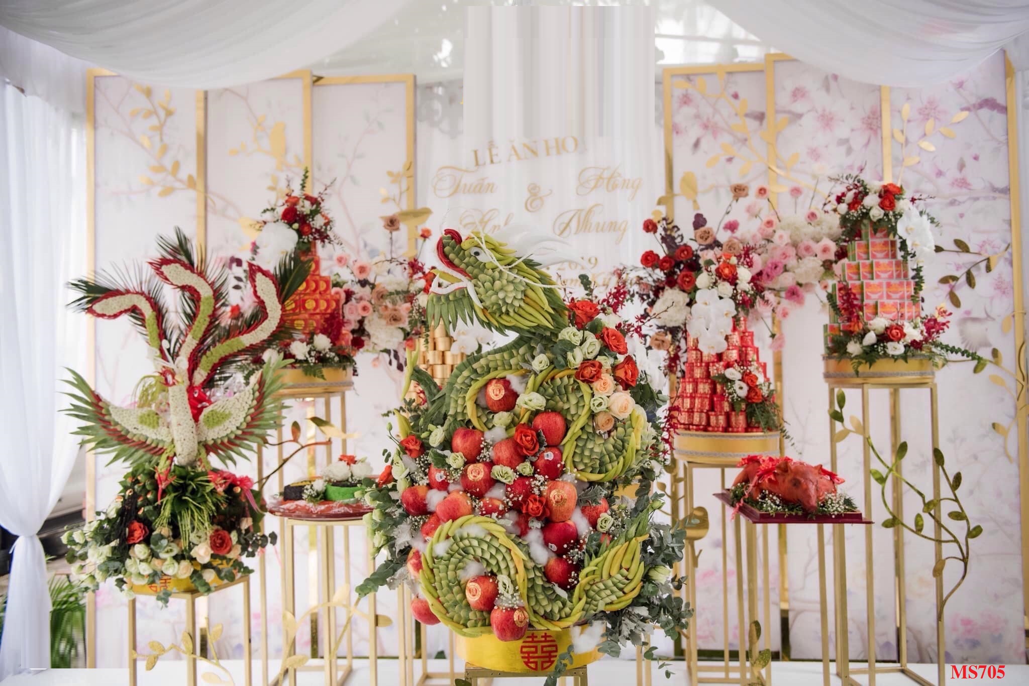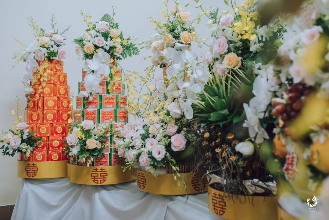 Để làm tăng thêm giá trị cho mâm tráp, không thể chỉ đặt mỗi bánh vào tráp mà cần phải trang trí thêm các phụ kiện đính kèm để làm tăng thêm tính sáng tạo, giúp bộ mâm tráp cưới thêm lung linh.