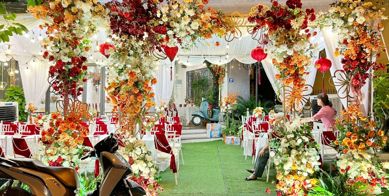 Trang trí rạp cưới hỏi cặp đôi Quỳnh Hương – Đức Thịnh