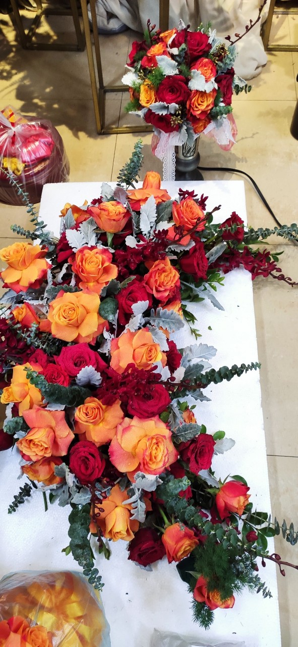 Hãy cùng Thu Hien Wedding team chiêm ngưỡng bộ tráp và hoa xe cưới đang đi dần đến công đoạn trang trí cuối để kịp hoàn thành đúng tiến độ